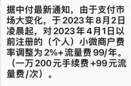 旗下品牌中付Pro、閃收銀加收99元流量費.