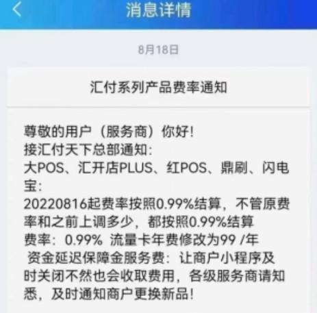 旗下大POS、匯開店plus、紅POS、鼎刷、閃電寶等產品,流量卡年費修改為99元/年.