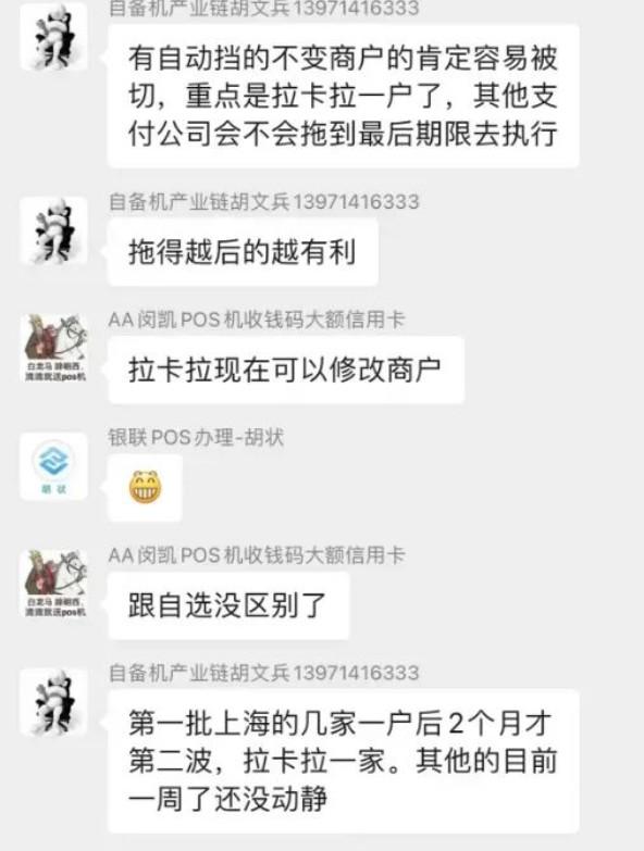 目前,259號文落地正在如火如荼的進行當中,很多支付公司都準備拖到最后期限執行,切掉先執行的支付公司商戶,而拉卡拉此舉無疑是反敗為勝??梢酝ㄟ^銀聯商戶報備變更其他支付公司的用戶,反向思維,實在是高手!超高手!