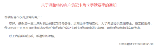 有代理商反饋,有些會員寶機器并未漲價,看來此次漲價的POS,只是部分機構上調費率,可能到了11月5日后,會員寶官方就會進行大面積漲價。