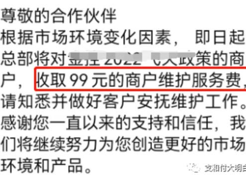 根據市場環境變化因素,X控飛天收取99的POS機商戶維護服務費。
