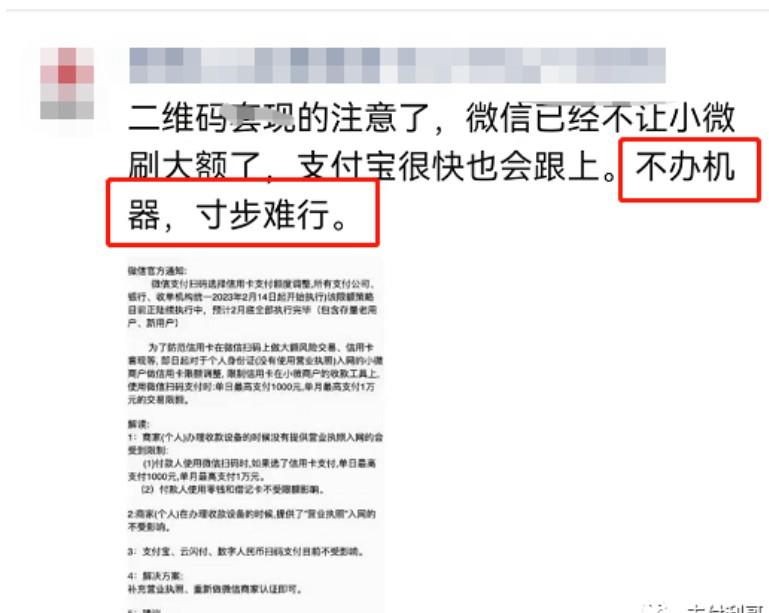 這應該是微信支付第N次發通知,要嚴控信用卡交易風險了,在這個前提下,部分用戶,改用刷卡機。