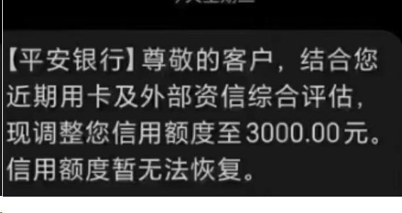 平安銀行持卡人信用卡由于近期用卡及外部資信綜合評估原因,額度在不到一個月的時間內(nèi),被連續(xù)兩次降額。