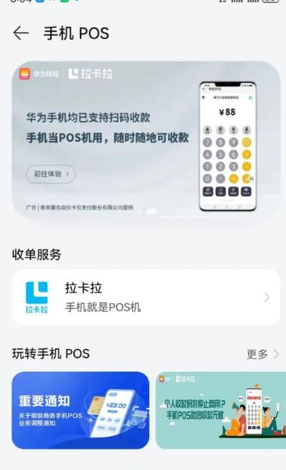 值得指出的是,有報(bào)道誤解此通知為華為下線了手機(jī)POS業(yè)務(wù),其實(shí)并非如此。目前華為錢包App顯示手機(jī)POS業(yè)務(wù)的收單服務(wù)機(jī)構(gòu)為拉卡拉公司。