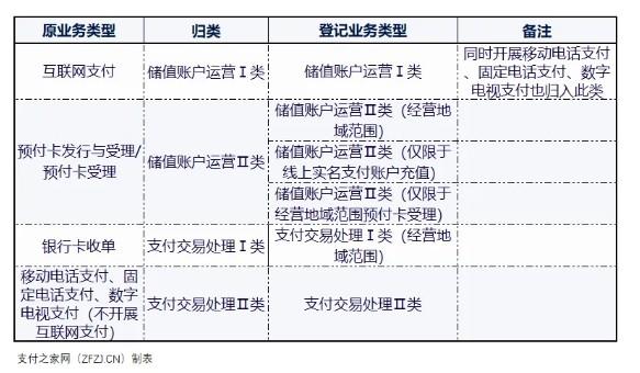 根據《實施細則》,儲值賬戶運營、支付交易處理業務分別細分為Ⅰ類、Ⅱ類,并明確新舊分類方式對應關系。