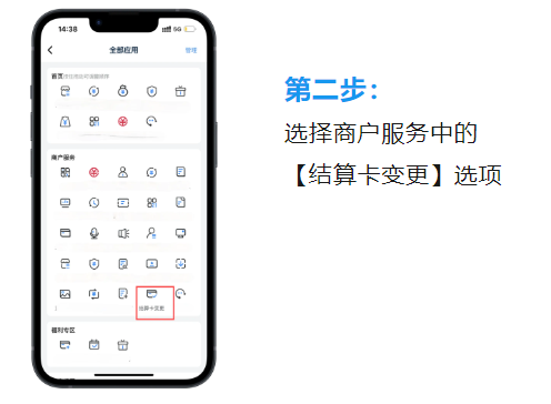 選擇商戶服務中的【結算卡變更】選項